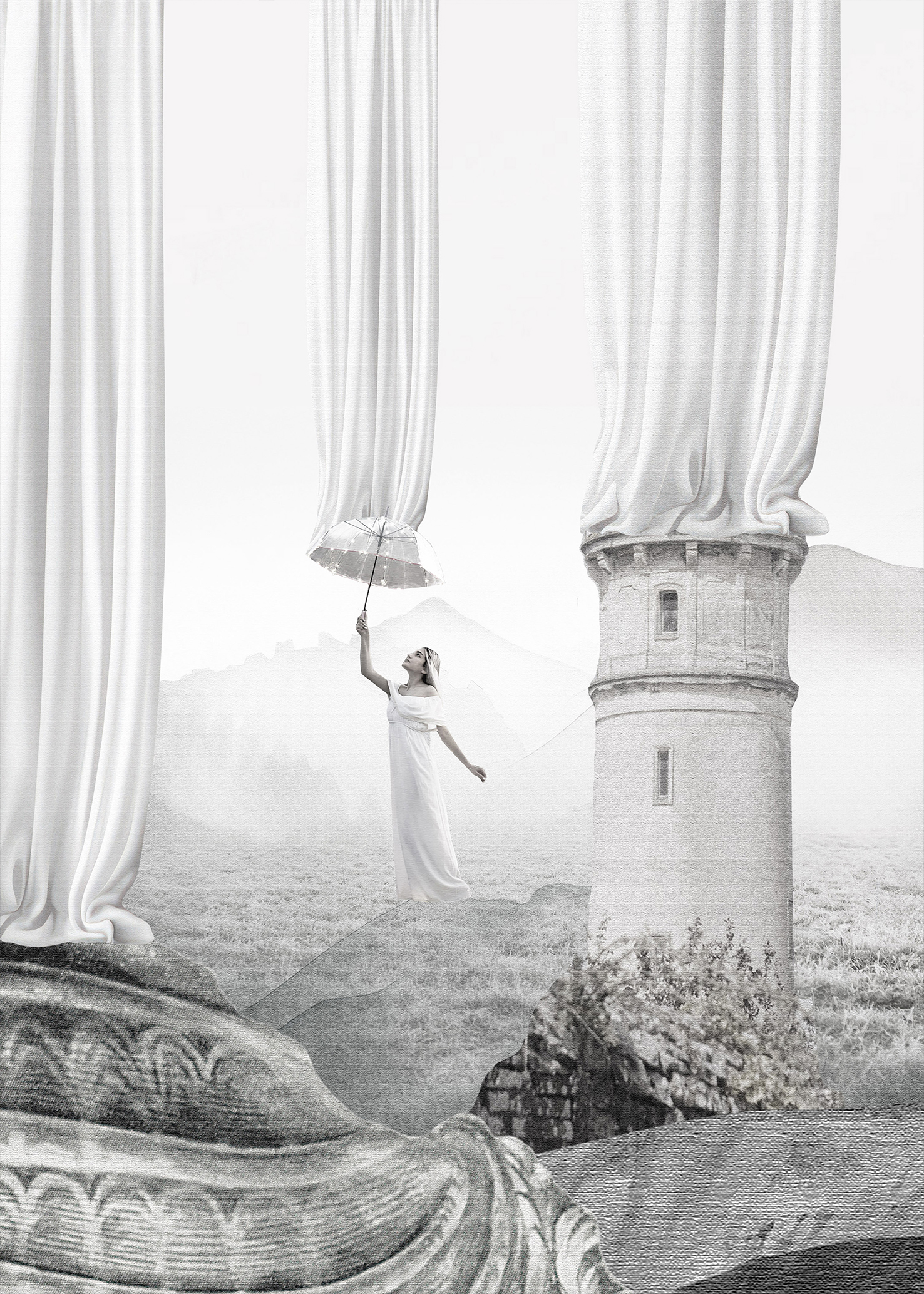 Drawing inspiration from Martin Heidegger’s concept of Dasein—being-in-the-world—Štibelj’s series of analogue and digital collages investigates the temporality of existence and the layered experience of being. Her works oscillate between the personal and the impersonal, the transient and the enduring, reflecting on how we inhabit time through memory, perception, and emotional resonance. In her analogue series Bright Side of the Melancholy (2020–2024), the tactile process of layering and juxtaposition becomes a metaphor for existence itself. By recontextualizing found and forgotten objects, fragments of images, and her own photographs, she forges connections between already-being (the past) and the lived present. Each composition emerges as a meditation on the metaphysical intimacy of life—on how random motifs and visual remnants coalesce into meaning only when the artist weaves her own presence into the work. Even in her digital collages from the series titled Journey of the moment (2025), where the material touch gives way to immaterial layering, Štibelj continues to explore the emotional texture of being. These compositions evoke spaceless, timeless states of consciousness—expressions of being-in-the-world that invite the viewer to reflect on their own fleeting, often subconscious experience of existence.